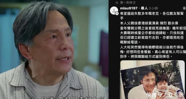 就在近日 香港娱乐圈上演一幕 “现实版还珠格格剧情” 那就是有一位 网名为malau的网友 在社交网络公开发帖寻亲 “本人父亲是香港绿叶演员炜烈,原名刘永伟,当年双亲分开之后曾经见过几次面,几年前他大寿的时候家里都收过请帖,只知道他已经建立新家庭没有去,也丢失了他的联系电话,人大了突然觉得有些事情不做以后就没得后悔,很想和他吃顿饭,希望有人可以帮帮忙,将我的联系方式给他”